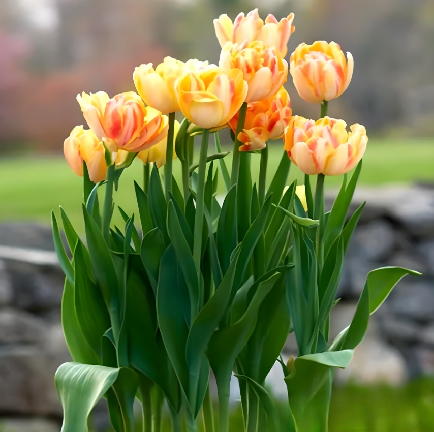Тюльпан Верона Санрайз — это яркий и впечатляющий сорт, который станет неотъемлемой частью вашего сада. Высота растения достигает 35-40 см, а крупные цветы диаметром 10-12 см радуют глаз своими насыщенными оттенками, создавая эффект яркого солнечного луча. Сорт отличается высокой зимостойкостью, что позволяет ему прекрасно перезимовать в условиях средней полосы. Эти тюльпаны легко ухаживать, так как они устойчивы к заболеваниям и вредителям.